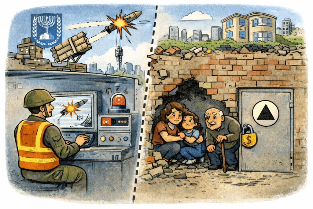 חוסנה של חברה נבחן גם באופן שבו היא מגינה על אזרחיה בעורף. אלא שקיימים עדיין פערי מיגון עמוקים – בין מרכז לפריפריה ובין קבוצות אוכלוסייה שונות. פערים אלו אינם נובעים רק ממחסור במשאבים, אלא גם מאופן חלוקת האחריות בין המדינה לבין השוק הפרטי. בעוד שהמדינה מופקדת על מערך ההתרעה, ההגנה האווירית ופיקוד העורף — מערכות לאומיות בעלות הישגים משמעותיים — תחום המיגון הפיזי הועבר במידה רבה לאחריות הרשויות המקומיות והאזרחים. כך נוצר פער שממחיש היטב את המציאות: השמיים — באחריות המדינה; אך הקירות שאמורים להגן על האזרחים — הרבה פחות.